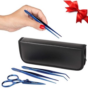 O'Creme Stainless Steel Precision Kitchen Culinary Fine-Tip Tweezer Tongs Set, Total 3 Pieces Blue