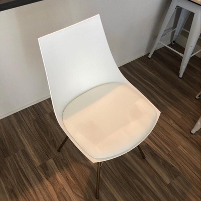 Inspired by minimalist Scandinavian design, the Oakley mid-century modern bucket chair is a classic choice for today's modern home. The timeless style of this modern chair feels right at home in the dining room or home office, bringing a casual yet sophisticated vibe to any space. An attractive crisscrossing gold chrome finished steel legs supports the colorful PP contoured shell, while plush foam padded faux leather seat offers additional comfort and support. More than just a place to sit; it's a super groovy home statement.
