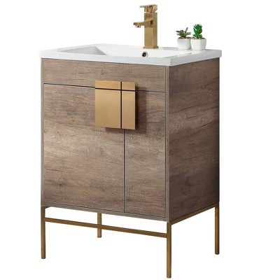 This is a nice vanity. It is a nice ceramic top and made with thick water resistant plywood so it made better than others. It has a beautiful oak gray finish. Nice addition to any home.