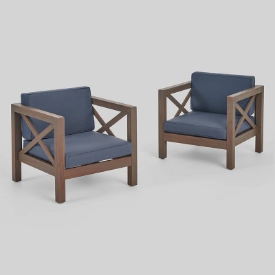 Dazzle your outdoor area with club chairs that are made for both exceptional comfort and impressive style. Combining mid-century modern design with fresh colors, these Christopher Knight Home Oana 2PK Acacia Wood Club Chairs will be a flawless addition to any backyard or patio. They can be used as a standalone chair or can be used to accent your existing furniture, making this a dream for those who love to personalize their space. With solid acacia wood frames and plush outdoor cushions, these chairs offer hours of fantastic conversation for you and your guests for years to come.