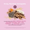 protein blend (whey protein isolate [whey protein isolate, sunflower lecithin], bovine collagen peptides), cocoa powder (processed with alkali), ** oat flour, ** chia seed powder. himalayan pink salt, ** pure bourbon vanilla powder ( ** cane sugar, ** vanilla bean extractives), gum blend (guar gum, acacia gum, xanthan gum), natural milk chocolate flavor, ** shatavari powder, ** turmeric root powder, ** monk fruit extract, ** stevia leaf extract. ** organic' '