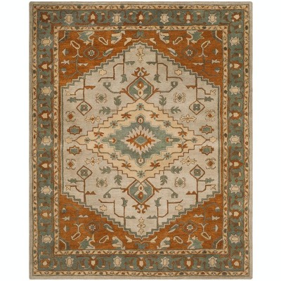 A: The rug is handmade, showcasing intricate weaving that enhances its aesthetic appeal.