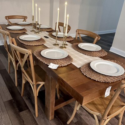 I’m using this as a centerpiece for my dining room table! It adds a rustic look to my table and I just love how simple and classic it looks. It is very thick and sturdy, moreso than I expected! I could buy a whole set to use as placemats but for now I’m using this one. I will definitely get more to add to my table. Looks sort of vintage too. I would definitely recommend these for anyone’s table or kitchen area. I might also use mine as a decorative piece on my hutch. It’s perfect for fall but could be used any season. It’s thick but I can still set items on it without them falling over. I love this simple, yet attractive piece!