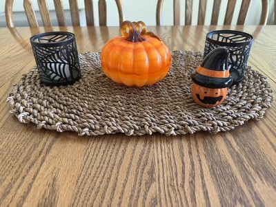 This oblong placement is just what I was looking for. Goes great with my Halloween decorations on our dining room table.