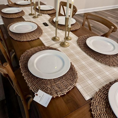 Prepare your dining table for festive meals or family gatherings with the Oblong Woven Chargers from Hearth & Hand™ with Magnolia. Designed in a beige hue, this charger plate is woven with lampakanay material, adding a rustic, organic feel to your holiday preparations. This oblong charger plate is ideal for placing under serving plates to enhance the presentation of your delectable dishes.