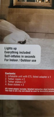 Great for indoor and outdoor use, this lawn ornament ensures your neighborhood always shines a little brighter at night. Thanks to the included ground stakes and tethers, both setup and disassembly of this 7-foot inflatable are made quick and simple, so you don't have to worry about getting frostbite in the cold. When the season passes, deflate this decoration for easy storage and further use in the coming years.