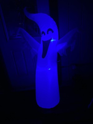 [This review was collected as part of a promotion.] This inflatable ghost is easy to use. Just plug it in and it inflates. Unplug and it deflated. The cord isn’t very long. The colors that change are nice and add interest. It does not look five foot high.