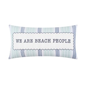 - THE COLLECTION: The blue, teal and white decorative pillow complements the Ocean Meadow collection and features an appliqued and embroidered pillow with the words WE ARE BEACH PEOPLE on a striped teal and blue ground.