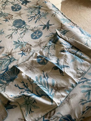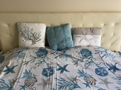 [This review was collected as part of a promotion.] Madison Park Pebble Beach is very pretty. The blue is vibrant. I love the shells on there, it's perfect for summer. It's soft and comfortable to use. Easy to wash. Its a perfect fit.