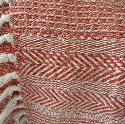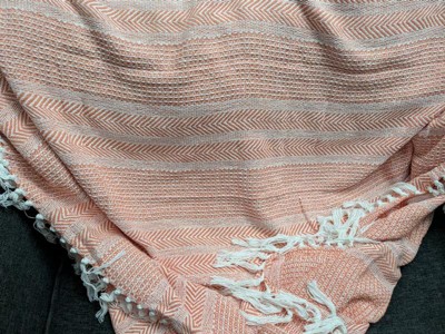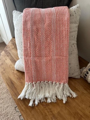 [This review was collected as part of a promotion.] What a beautiful throw this is! The coral color is vibrant, perfect for summer picnics or to wrap up in during cooler summer nights. It fits perfectly with boho chic esthetic. And it’s surprisingly soft to the touch unlike other woven throws I have purchased in the past. Would also add a beautiful pop of color at the foot of a bed. Very happy with this throw at this price point.