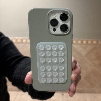 A: Hi, thanks for reaching out about the Octobuddy Silicone Suction Cup Phone Case Mount Classic The adhesive pads on accessories like the Octobuddy are designed to create a strong, secure bond with smooth, non-porous surfaces such as hard plastic (polycarbonate), smooth silicone, or glass. If you have any additional questions, we welcome you to contact MyTGTtech at 833-848-8324 every day between 7 am and 11 pm CST.