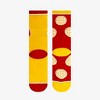 Eggo Split Big Kids Crew Socks. Let your child start their day in style with these Eggo Split Crew Socks! Perfect for big kids ages 7-10, these bright and bold crew socks feature the classic Eggo waffle design with vibrant red and yellow tones, capturing the look of everyone’s favorite breakfast treat. The playful design showcases the Eggo logo and the iconic waffle pattern, adding a fun twist to any outfit.