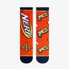 Nerf Split Big Kids Crew Socks. Get ready to blast into action with these Nerf Split Crew Socks, designed for big kids ages 7-10. Featuring vibrant orange and blue colors with dynamic Nerf graphics, these socks capture the excitement of the ultimate dart-blasting brand. The design showcases Nerf blasters and a target symbol, making every step feel like part of an epic game.
