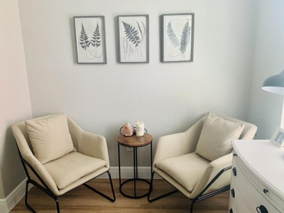 These chairs go perfectly with the look of our bedroom. We originally ordered the green, but returned because they are LIME green, not olive like the pictures look. We got the cream instead and we are very happy! The seat cushions are hard, but I’m hoping they will soften up over time. Super easy assembly. Perfect size for our small nook.