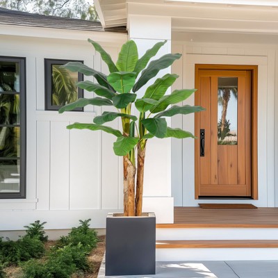 ODK Artificial Banana Tree, 6FT Faux Banana Tree with Grey Planter, Artificial Plants with 21 Faux Banana Leaves Plant for Home Office Decor