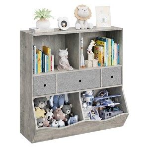 ODK Toy Storage Organizer for Kids, 2-Tier Bookshelf with 3 Cubbies & 2 Tilted Storage Bins, Playroom, Nursery, Kindergarten Organizer, Easy Assembly