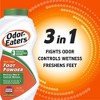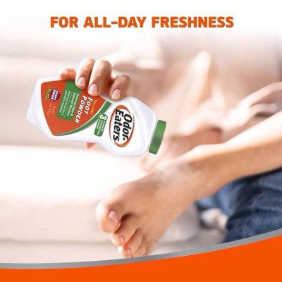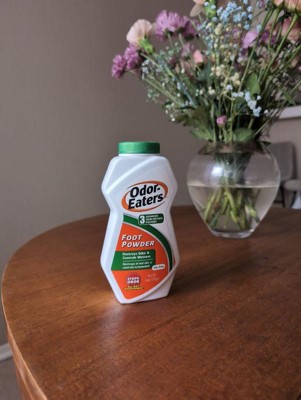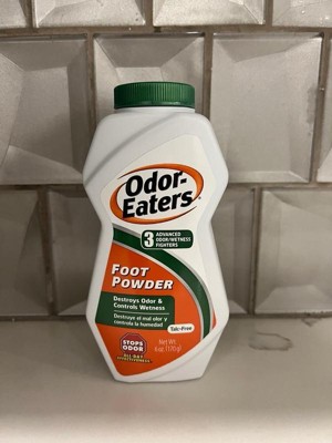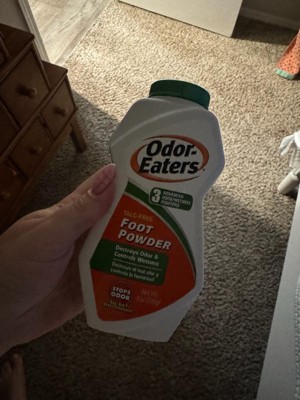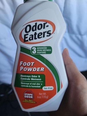 Triple-Action Odor-Eaters Foot Powder: Fights Odor, Controls Wetness, and Freshens Feet. This high-performance foot odor powder starts working immediately and provides long-lasting protection against wet and stinky feet and shoes so you aren’t embarrassed when removing your shoes. From Odor-Eaters, a brand with over 50 years of trusted quality, it provides all-day effectiveness and foot odor control. Works instantly to destroy odor and keeps working all day. Scientifically proven to reduce foot odor, this powder offers extra strength for extra protection. Not only does this foot deodorizing powder help in the fight against foot odor, but it also absorbs sweat to keep your feet and shoes fresher and drier throughout the day. The extra strength, extra protection Odor-Eaters Foot Powder formula contains corn starch and a super-absorbent material to keep your feet drier and eliminate odor throughout the day. The bottle is easier to grip, hold, and dispense due to the uniquely crafted design. Talc-free and safe for daily use. Tough on odor, Easy on shoes. Guaranteed All Day Odor Protection.