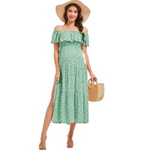 - Maternity Dress Off Shoulder Split A Line Casual Maxi Dress Photography Dress Green-HY-X-Large