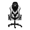 Add a classy touch to your gaming station with our white/black gaming chair. It is sturdy and comfortable, has durable nylon base and is well cushioned to support your back. This high back chair comes in two tone accents, outlining the curves of the chair. Made with rich and durable PU, contoured segment memory-foam padding, includes neck and lumbar support pillows, adjustable 2D padded armrests and the pneumatic seat height adjustments make its look complete. Features tilt with tension control and 150 degree reclining mechanism and a 5-star durable nylon base with non-marking casters allows you to glide with ease. This chair supports 250lbs of weight limit and comes with 2-year limited warranty.