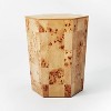 Give any living space in your home an instant refresh with the statement style of the Ogden Burled Wood Accent Table from Threshold™ designed with Studio McGee. This hexagon-shaped accent table easily pairs with a range of decor styles, and is perfect for displaying a lamp, decor and more. Whether you place it between two armchairs or next to a couch, this burled wood accent table makes the perfect functional pick with its unique handcrafted vibe.