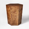 Give any living space in your home an instant refresh with the statement style of the Ogden Burled Wood Accent Table from Threshold™ designed with Studio McGee. This hexagon-shaped accent table easily pairs with a range of decor styles, and is perfect for displaying a lamp, decor and more. Whether you place it between two armchairs or next to a couch, this burled wood accent table makes the perfect functional pick with its unique handcrafted vibe.