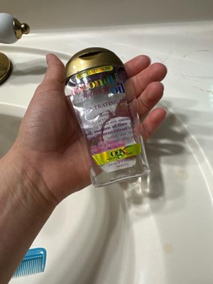 I use this OGX oil as an oil treatment before washing my hair, and I love how soft and shiny it leaves my hair. It doesn’t feel greasy at all, and a little goes a long way. I also use it on dry hair to help with frizz, and it never leaves residue. Plus, it smells amazing