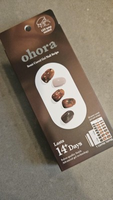 A deliciously sweet manicure inspired by a brown sugar latte. Combines luscious brown hues, milky gel marbling, and flecks of gold foil. Ohora Semi Cured Gel Nail Strips offer salon-quality nails in minutes. Achieve 14+ days of long-lasting durability and a professional finish at home, showcasing Ohora's dedication to top-notch quality. Ohora Semi Cured gel nail Strips offer an effortless process—simple application, filing, curing, and removal—perfect for beginners and pros alike.