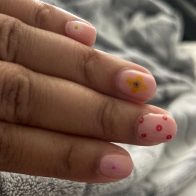 I recently tried the Spring Bouquet Gel Nails from Ohora, and I have to say, I'm impressed! The application was super easy—no need for UV lamps, just peel-and-stick! The colors are vibrant and beautiful, and they really pop in natural light. The finish is smooth and glossy, giving a salon-quality look. The durability is great too; they lasted for over a week without any chipping or lifting, even with daily activities. The only downside I found is that the edges can start to lift slightly after a while, especially if you're rough on your nails. Removing them was simple—just peel them off without damaging my natural nails, which was a huge plus. Overall, I highly recommend these for a quick, easy, and stunning manicure!