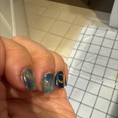 My favorite design yet in my favorite color! So easy to apply and last over 2 weeks and I am HARD on my hands. You need to cure them under a light to harden them. Salon results with the price!