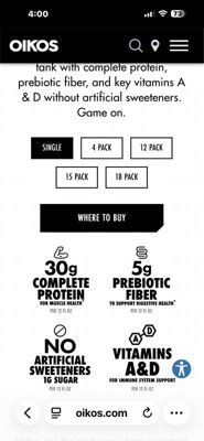 [This review was collected as part of a promotion.] The Oikos 30g Protein Shake in Vanilla is a solid choice for a quick, tasty protein boost. The flavor is smooth and not overly sweet, with a light creamy texture that makes it easy to drink. At 30g of protein and 170 calories per serving, it's perfect for muscle recovery or as a snack. The best part? It's super convenient—just grab and go, no mixing required. I didn’t experience any bloating or weird aftertaste, which is a common issue with some shakes. If you’re looking for a delicious, low-sugar protein shake that's easy to carry around, I’d definitely recommend giving this one a try!