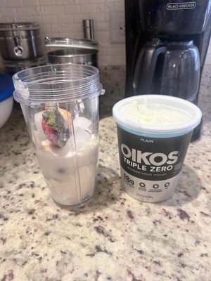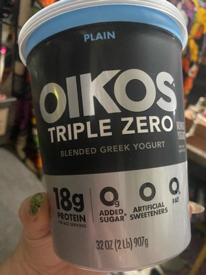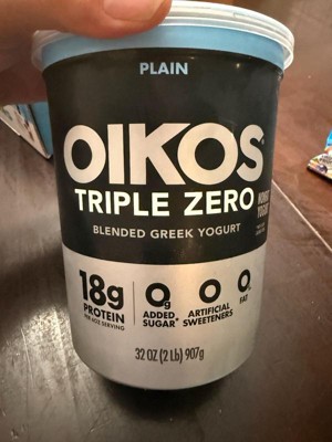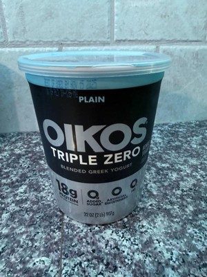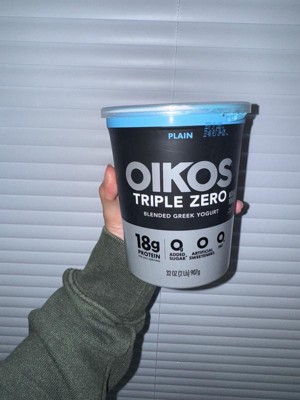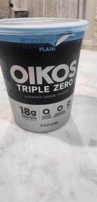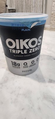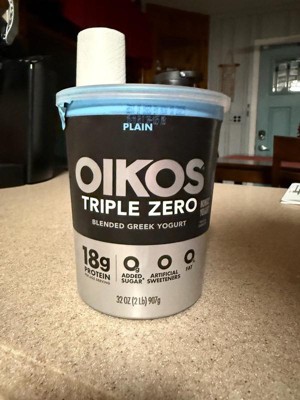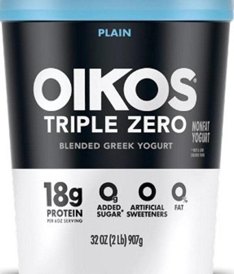 - STRONGER MAKES EVERYTHING BETTER: One 32 oz tub of Oikos Triple Zero Plain 0g Added Sugar*, Greek Nonfat Yogurt