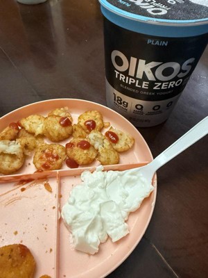[This review was collected as part of a promotion.] I truly enjoyed this plain yogurt from Oikos. The texture is smooth, creamy, and thick—very similar to sour cream. Today, I paired it with granola and half a tablespoon of honey. This yogurt also works great as a marinade or in smoothies. I appreciate that it contains no added sugar, artificial sweeteners, or fat.