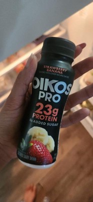 Go big on protein with Oikos Pro Strawberry Banana Cultured Dairy Drink. Each 7 fl oz Oikos Pro dairy drink packs a punch with 23g complete protein to help support strong muscles.* Plus, every serving contains complete protein (all nine essential amino acids) and is a good source of vitamin D and calcium for strong bones. Oikos Pro is packed with B vitamins (B2, B6, B12), which are used by muscles to support energy production. This thick and creamy dairy drink contains 0g added sugar** per serving, and no artificial flavors or colors from artificial sources. With protein and deliciousness, Oikos Pro drinks are great tasting, convenient solutions for adding complete protein to your diet every day. These on the go snacks are a great choice for busy professionals, students on the go and athletes looking for post workout snacks. Toss an Oikos Pro dairy drink in your lunchbox with an ice pack for school or the office. Enjoy these high protein packed snacks for an afternoon pick-me-up or as an addition to protein shakes and smoothies. Experience the power of complete protein with Oikos Pro Strawberry Banana Yogurt-Cultured Dairy Drinks. Oikos Pro — Stronger Makes Everything Better(R).*Protein and exercise help fuel strong muscles as part of a balanced diet. **Not a low-calorie food.