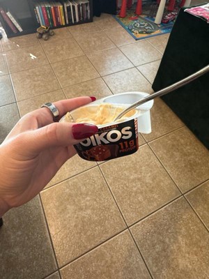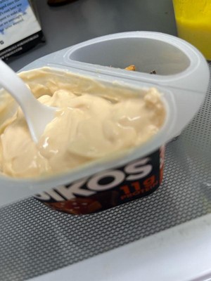 [This review was collected as part of a promotion.] This yogurt has 11g of protein! It taste just like a salted caramel flavored pretzel. It had caramel pieces, chocolate pieces, and pretzel pieces to mix into the caramel flavored yogurt. It is easy to mix, as the container part wirh the toppings just flips up and into the yogurt. Overall, this is very good and I would get it again.