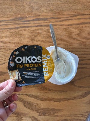 The Oikos Remix yogurt offers a delightful blend of flavors and textures, making it a perfect snack or breakfast option. With a creamy base and crunchy mix-ins, it satisfies cravings while providing a healthy dose of protein. Guests appreciate the innovative packaging that keeps ingredients fresh and separate until ready to enjoy. The variety of flavors, including S'mores and Salted Caramel, adds excitement to the yogurt experience, making it a must-try for yogurt lovers.