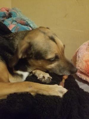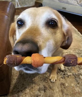 [This review was collected as part of a promotion.] My dog seems to really like these Oinkies hearty kabobs. She gets very excited to get one, walks around proudly showing her prize before going to work chewing the the kabob up. I like that it has no beef rawhide and is made with natural, easily digestible ingredients. The Oinkies help keep her teeth clean. My lab mix is not an aggressive chewer, so these bones are not a bad size for her, but I will probably look for a little larger chew next time.