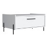Product Name: Okak 15" High Minimalistic Rectangle Coffee Tables with Pull Down Cabinet and Open Shelf, White
