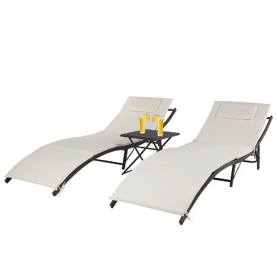 Okak 2 PCS Patio Chaise Lounge with Extra Table,Aluminum Poolside Chaise Outdoor Tanning Chair with Adjustable Backrest for Beach,2 Wheels,Khaki