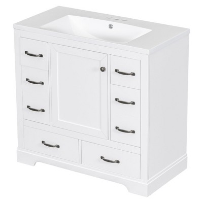 Okak 24" Bathroom Vanity with Ceramic Sink, Morden Bathroom Cabinet Storage with 2 Spacious Drawers and 1 Door for Bathroom, White
