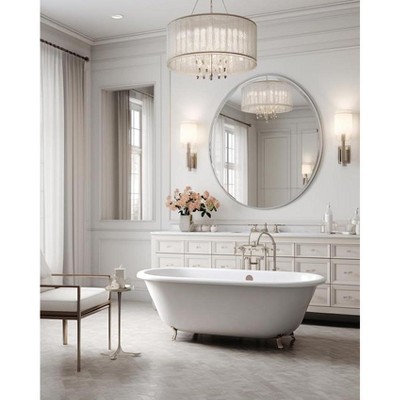 Okak 36IN Minimalism Round Mirror, Wall Mount Bathroom Mirror with Aluminum Frame, Circle Mirror for Bathroom, Living Room, Bedroom, Silver