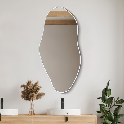 Okak 48X32IN Modern Bathroom Mirror with Aluminum Frame, Wall Mirror with 2 Hanging Ways, Vanity Mirror for Bathroom, Living Room, White