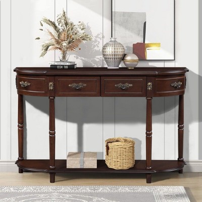 Okak 52IN Wooden Retro Console Table with Relief Carvings, Entry Table with 1 Open Shelf and 2 Drawers, Narrow Console Table for Hallway, Espresso