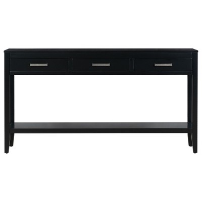 Okak 59.1IN Farmhouse Entryway Table with Bottom Shelf, Narrow Console Table with 3 Drawers and Iron Handles, Accent Table for Hallway, Foyer, Black