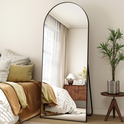 Okak 59IN Arched Standing Mirror with Aluminum Alloy Thin Frame, Full Length Mirror with Hanging Holes, Mirror for Living Room, Bedroom, Black