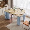 Product Name: Okak 59IN Extendable Dining Table with Removable Middle Leaves, Kitchen Table with Power Outlet, Dinner Table for Dining Room, Blue+Natural