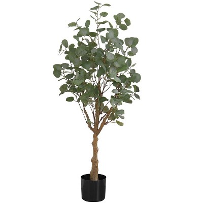 Okak 5FT Artificial Eucalyptus Tree with Black Plastic Pot, Indoor Faux Trees with Realistic Leaves and Nature Trunk, Bonsai Tree for Home, Green
