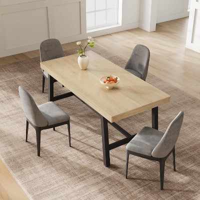 Okak 63IN Farmhouse Oval Dining Table for 6 People, Kitchen Table with Large Round Pedestal, Dinner Table for Living Room, Dining Room, Brown