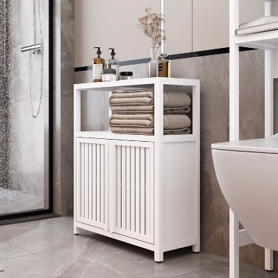 Okak Bamboo Bathroom Storage Cabinet with Open Storage and 2 Doors, Freestanding Cabinet for Bathroom, Living Room
