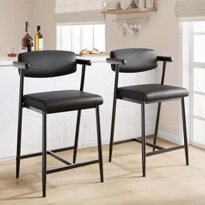Okak Bar Stools Swivel Counter Chairs with Metal Frame Set of 2, Hand Woven Paper Rope Dining Barstools, Dining Chairs for Kitchen, Creamy White