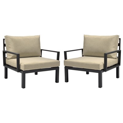 Okak Boho Outdoor Acacia Accent Chairs Handwoven Rope Dining Chairs,Set of 2,Patio Armchairs with Washable Cushion for Backyard,400lbs Max,Beige